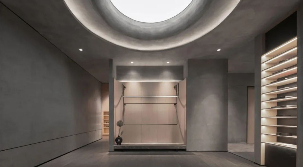 圆形吊顶内嵌光源,指向无限的延展精神,形成极具分量感的视觉焦点,渐次将身体与瑜伽的圆融精神联系在一起,形成连续的空间感受。