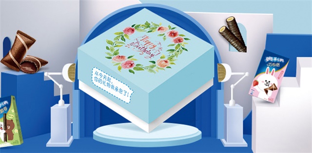 2、C2B反向定制将创意的权利交还给消费者。通过淘宝弹窗H5,消费者自我选择饼干包装图案,书写寄语,一键下单生成。