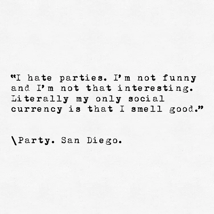“我讨厌派对,我不幽默也不有趣。我唯一的社交优势是我够好闻。”
