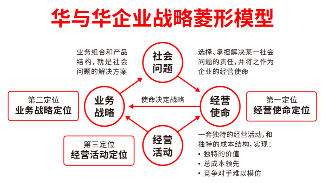 另外,对华与华的战略方法论“企业战略三位一体模型”也有所发展,就是我们最新归纳的“华与华企业战略菱形模型”。
